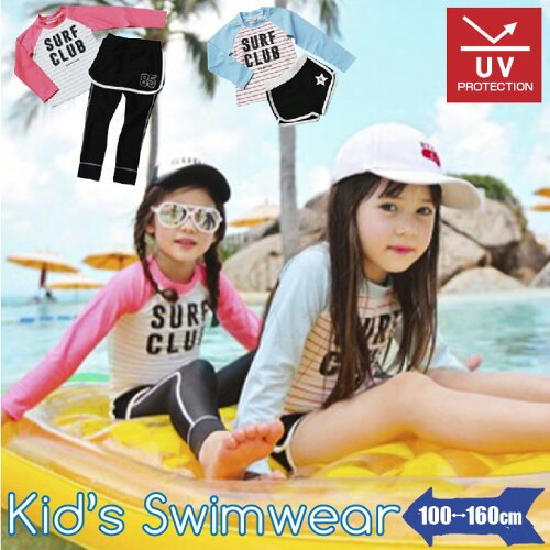 【予約販売:7-10営業日頃発送】子供 水着 ラッシュガード 長袖 セパレート ボーダー 女の子 キッズ キッズ セット 子ども用 水着 スクール水着 みずぎ 子供水着 2点セット 水遊び 子ども 日焼け防止 スイムウェア 夏 ジュニア ガールズ 紫外線対策 【ネコポス送料無料】M/L/XL/XXL 子供 水着 セパレート 女の子 水着 キッズ 2